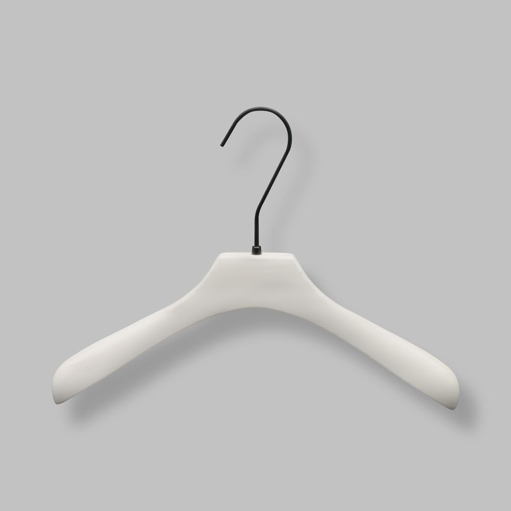 Wieszak HGR-ABS-002 to model zaprojektowany z myślą o ekspozycji odzieży męskiej – od koszulek, przez garnitury, aż po lekkie płaszcze i sukienki. Wykonany z trwałego tworzywa ABS, wyróżnia się wykończeniem w klasycznym odcieniu RAL 9010 (czysta biel), co sprawia, że doskonale prezentuje się w każdej przestrzeni handlowej i ekspozycyjnej. Smukły profil o wymiarach 43 x 5,5 cm zapewnia optymalne podparcie ubrań bez deformacji materiału.