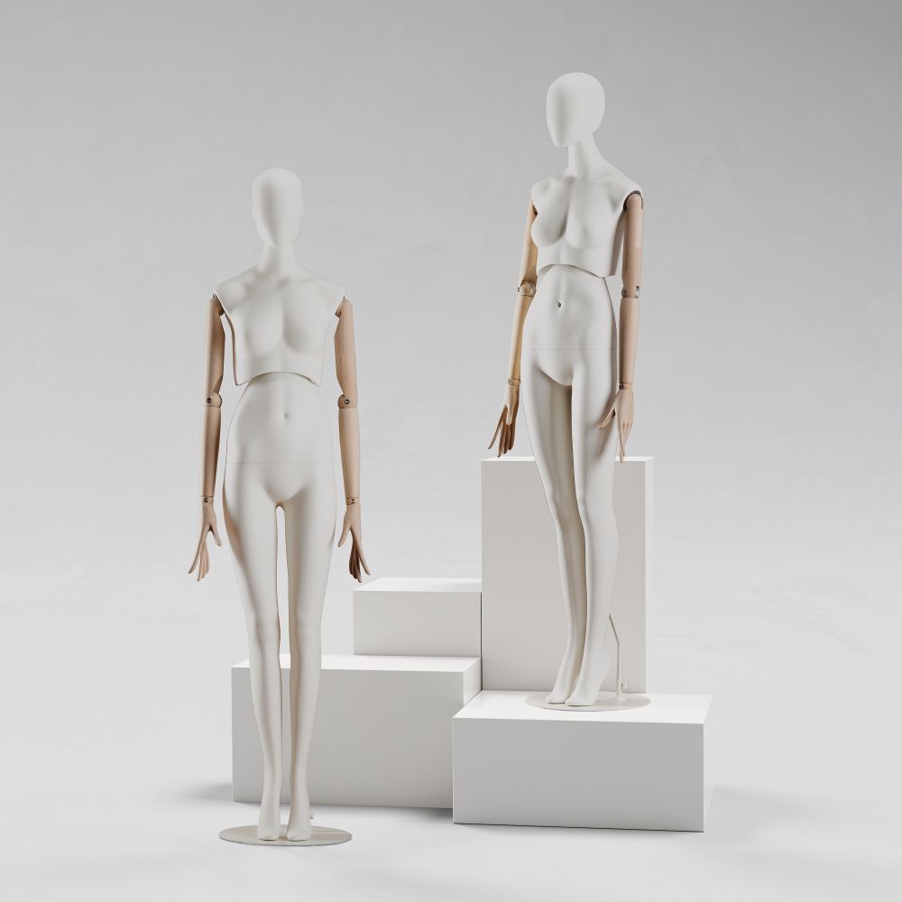 Wszystkie elementy zestawu wykonane są z laminowanej płyty MDF w kolorze biały mat, co zapewnia neutralne tło dla produktów, nie odciągając uwagi od ich formy i detalu. Te meble wystawowe doskonale sprawdzą się w butikach, showroomach i na eventach branżowych, gdzie ważna jest zarówno estetyka, jak i elastyczność aranżacji.