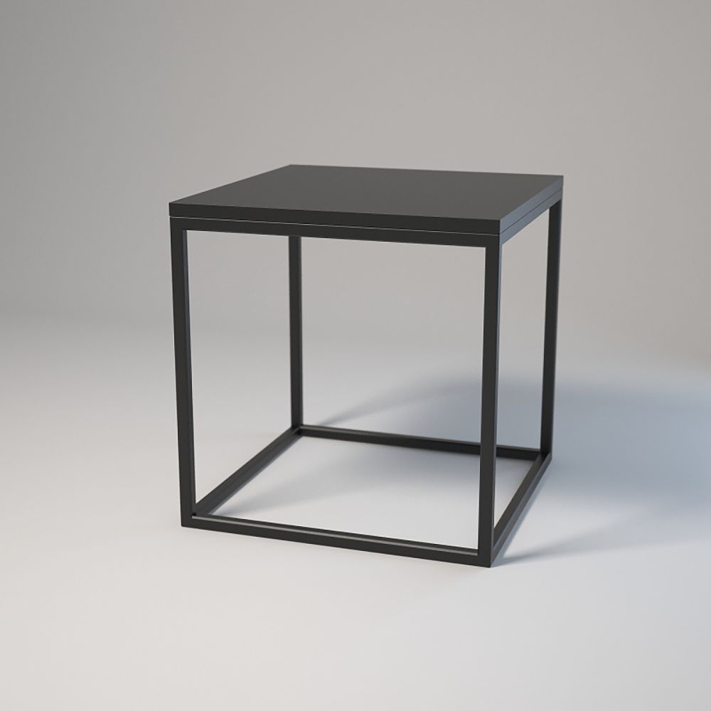 Wymiary: 50x50 cm, wysokość 12 cm. Konstrukcja ze stali malowanej proszkowo (profil 20x20x1,5 mm). Blat z laminowanej płyty z estetycznym obrzeżem. Montaż przy użyciu muf i śrub. Wyposażony w regulowane stopki. Dostępne kolory: biały, czarny.