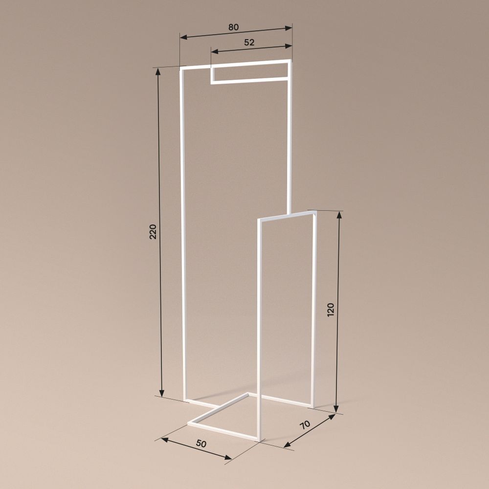 PD120 to wysoki podest z boczną ramą, która pełni funkcję wieszaka sklepowego – idealnego do prezentacji pojedynczych ubrań, dodatków lub grafik. Jego konstrukcja sprawia, że może być wykorzystywany jako centralny ekspozytor w witrynie, showroomie lub otwartej przestrzeni sklepu.