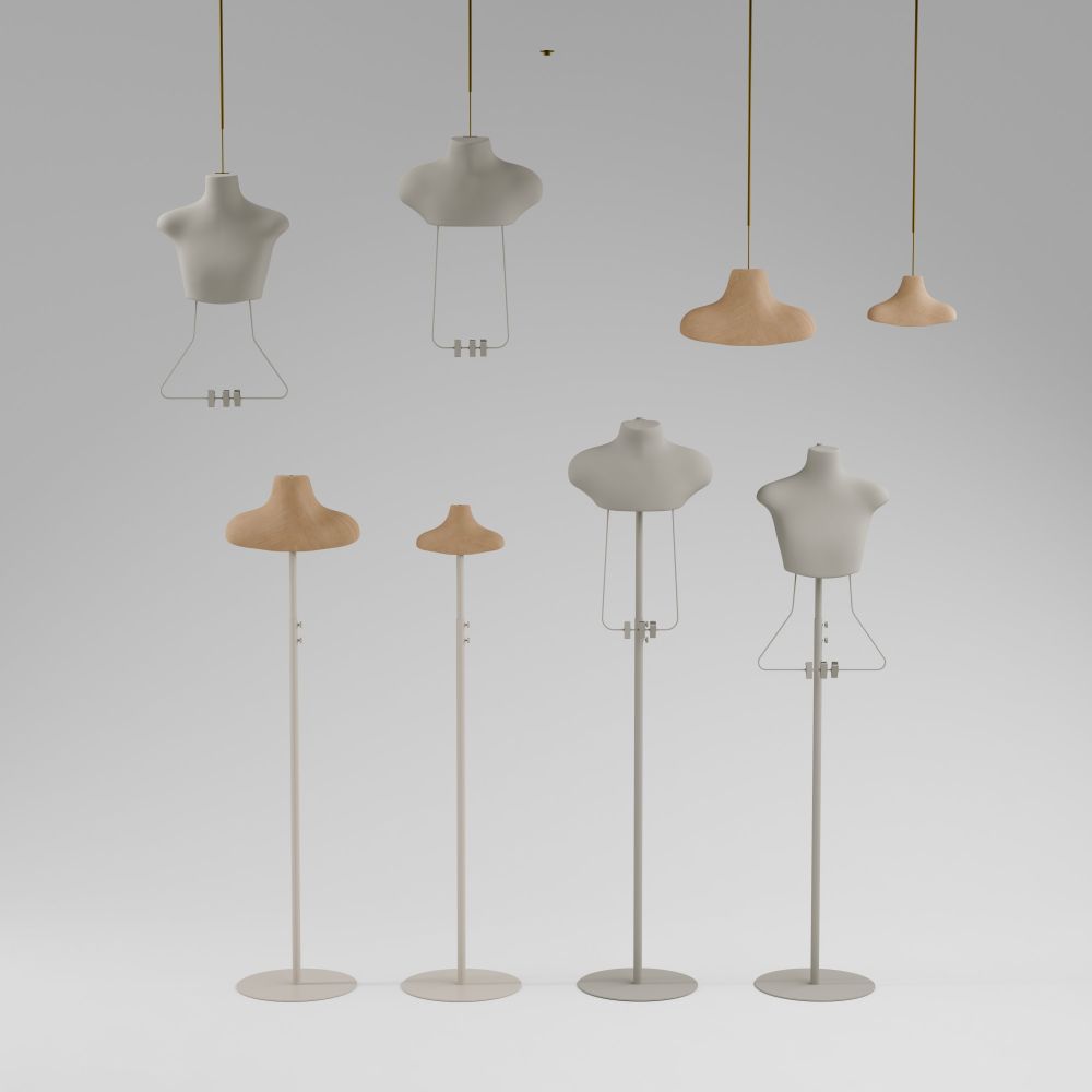 Męski tors z kolekcji FLO to idealne rozwiązanie dla tych, którzy szukają minimalistycznego, ale funkcjonalnego sposobu prezentacji całych stylizacji. Metalowa rama, zintegrowana z bryłą torsu, pozwala w estetyczny sposób zaprezentować zarówno górne, jak i dolne elementy garderoby – od marynarki po spodnie.