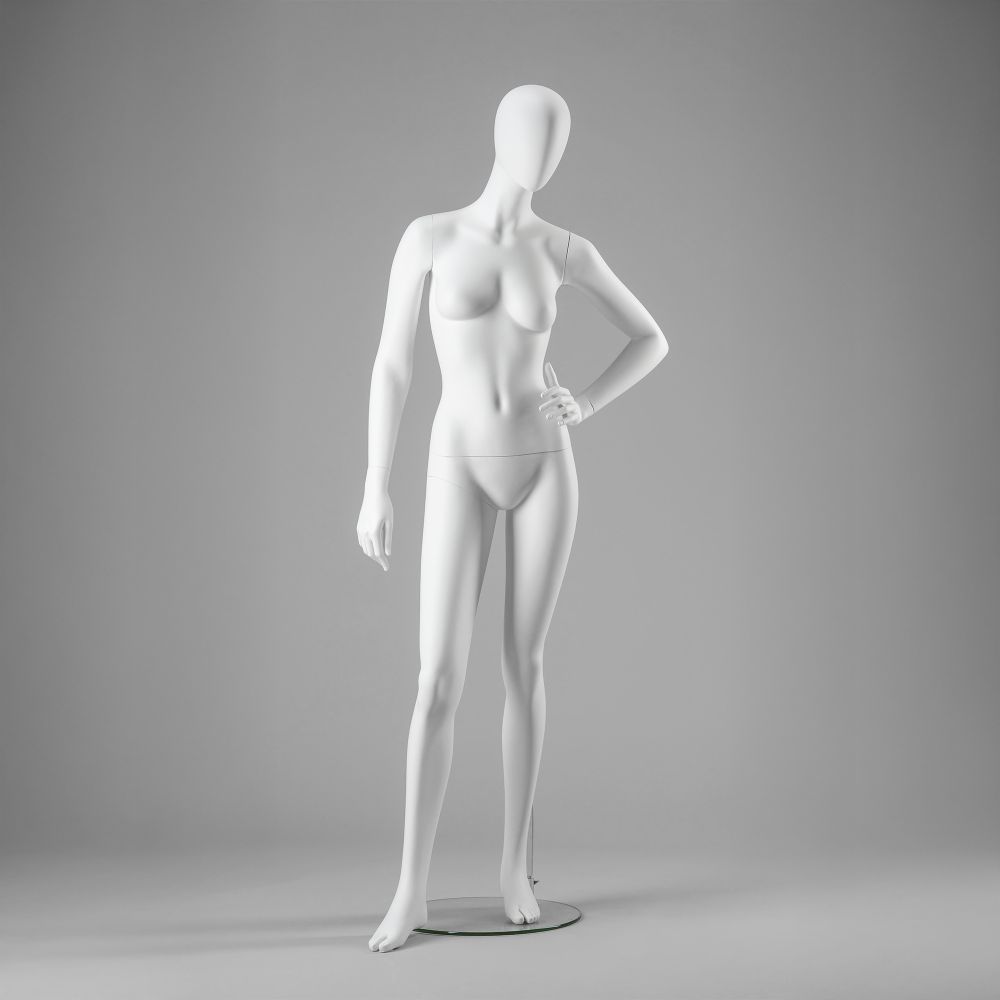 Prezentowany damski manekin odzieżowy został wykonany z odpornego na uszkodzenia włókna szklanego, co zapewnia jego długą żywotność. Najczęściej wybieranym modelem jest wersja w klasycznej, matowej bieli, która doskonale komponuje się z różnymi stylami wnętrz sklepowych. Wysokiej jakości damskie manekiny sklepowe podkreślają profesjonalizm ekspozycji i przyciągają uwagę klientów, skutecznie eksponując prezentowaną kolekcję.