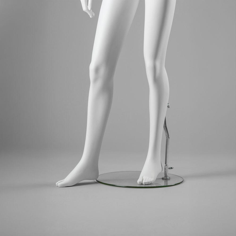 Dostosuj ekspozycję do własnych potrzeb! Ten damski manekin sklepowy dostępny jest w dwóch wariantach – z klasycznymi stopami oraz w wersji płaskiej. Wybierz model najlepiej dopasowany do aranżacji Twojej przestrzeni i sposobu prezentacji odzieży.