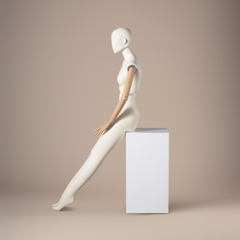 Aby stworzyć ekspozycję, która angażuje odbiorcę, warto eksperymentować z regulowanymi częściami manekina. Skręcając delikatnie tors w stosunku do bioder i wykorzystując ruchome ramiona i głowę możemy wprowadzić nieco ruchu i ekspresji w budowaniu interakcji między manekinami. Dla bardziej oryginalnej pozy manekina można na przykład ustawić tors lekko odchylony do tyłu, a głowę skierować ku górze, by uzyskać efekt spoglądania w niebo. Można także pochylić tors do przodu, sugerując ruch sięgania po przedmiot, dzięki czemu angażujemy również dodatkowe akcesoria kolekcji odzieżowej. LUF2-A to więcej niż klasyczny damski manekin wystawowy – to narzędzie do tworzenia wyjątkowych witryn sklepowych.