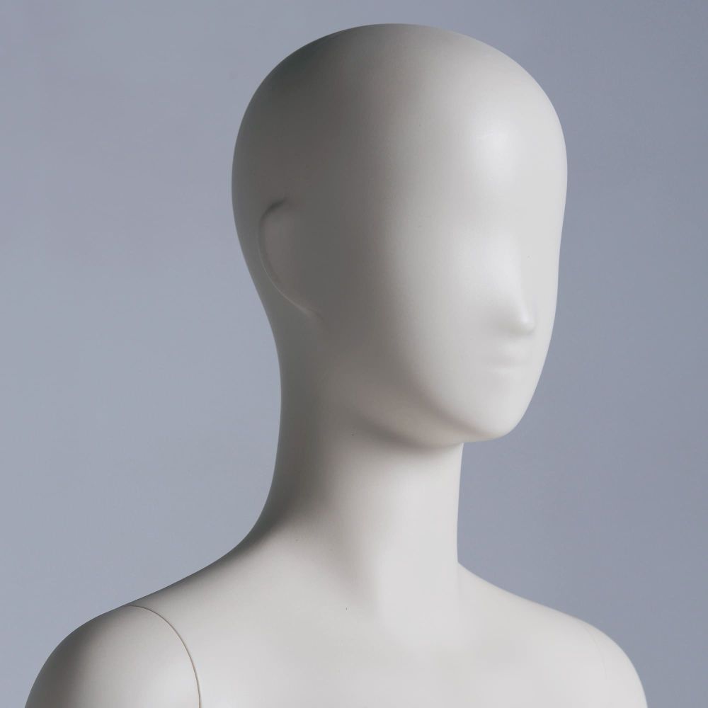 - Manekin biały kremowy, który dłużej wygląda estetycznie –ten efekt udało się osiągnąć dzięki skorzystaniu z polietylenu barwionego pigmentem na etapie produkcji. Brak lakieru sprawia, że powierzchnia jest mniej wrażliwa na widoczne ślady użytkowania.