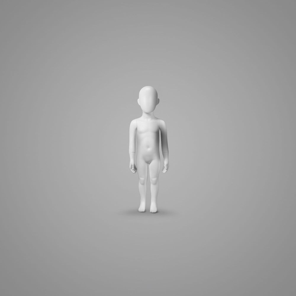 Większa elastyczność ekspozycji (unisex) – neutralny charakter pozwala wykorzystać manekin zarówno do kolekcji dziewczęcych, jak i chłopięcych, bez ograniczania koncepcji witryny czy działu.