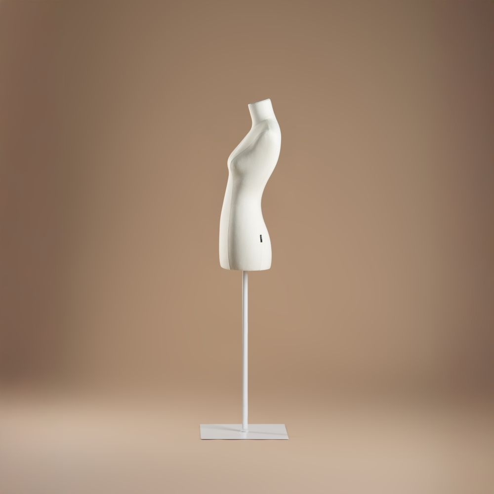 W odróżnieniu od innych modeli, damski tors krawiecki T-REF sprzedawany jest w zestawie z białą metalową podstawą, co zapewnia stabilność i wygodę użytkowania. Dzięki klasycznemu wykończeniu i neutralnej kolorystyce doskonale sprawdzi się w butikach, showroomach i przestrzeniach ekspozycyjnych.
